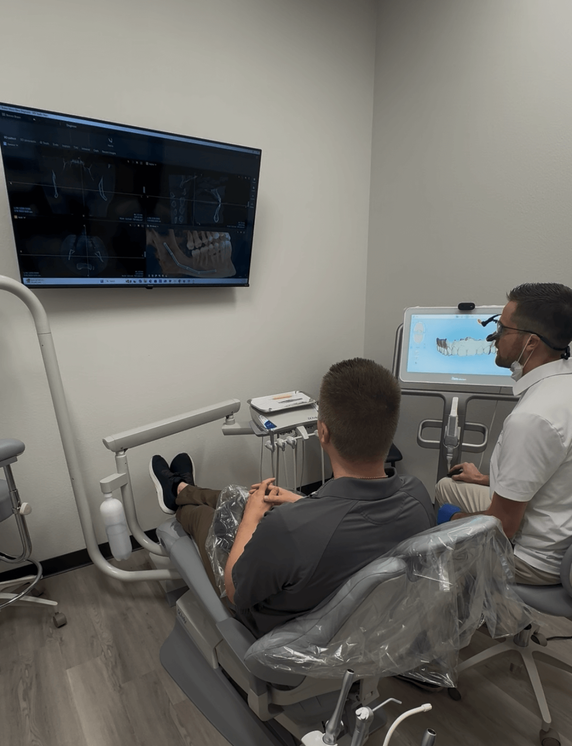 For your first visit at Rose Crest Dental you will receive a comprehensive dental examination, which is a thorough check-up designed to assess the overall health of your teeth, gums, and mouth, as well as to detect potential issues before they become serious. Here's what you can expect during the visit:1. Patient History Review:You will be asked about your medical history, lifestyle habits (like smoking or diet), and any oral health concerns you have. This information helps them tailor the exam to your needs.2. X-rays, Photos, and Scan:To get a detailed view of the teeth, bone, and surrounding tissues, you may have dental X-rays and photos taken. These images help identify problems that are not visible to the naked eye, such as cavities between teeth, bone loss, or impacted teeth.3. Cleaning and Polishing:This professional cleaning involves removal of plaque and tartar from the teeth using specialized tools. thorough polishing to remove surface stains and smooth the teeth. 4. Physical Examination:Dr. Hunsaker will visually examine your teeth, gums, and mouth. He will check for signs of decay, gum disease, infections, or other abnormalities.5. Review and Schedule Next Appointment:You will have time to ask Dr. Hunsaker any questions about findings and create a plan to enhance your smile and health. Our wonderful staff will help you to schedule your next appointment. We look forward to meeting you. .